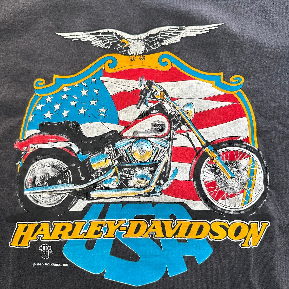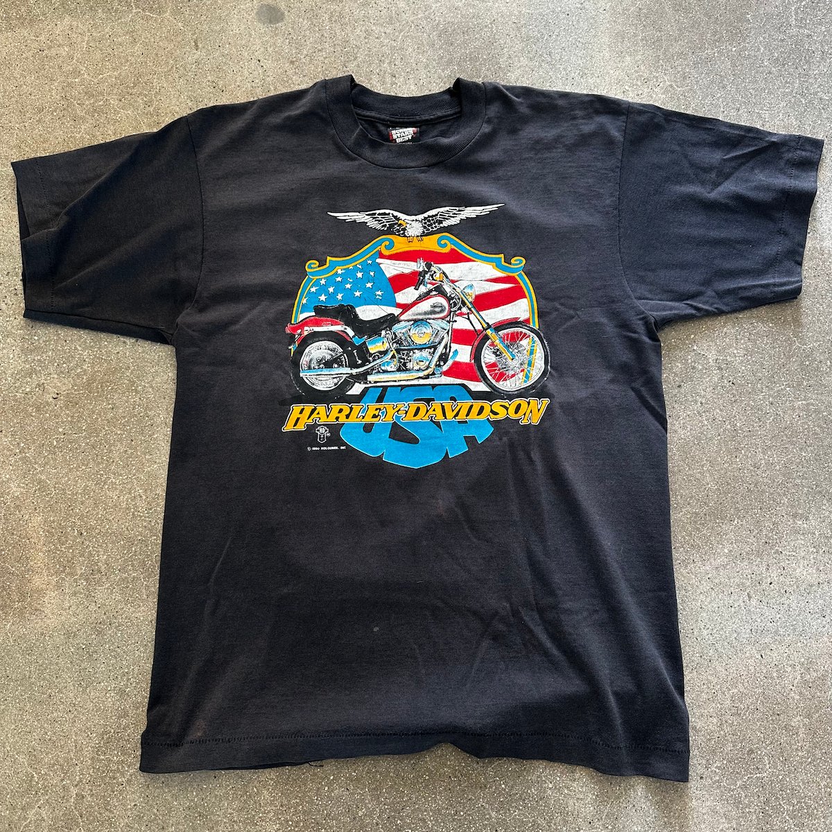 Harley Davidson Size L 1990 Single Stitch Screen Stars Best Made in USA T-Shirt